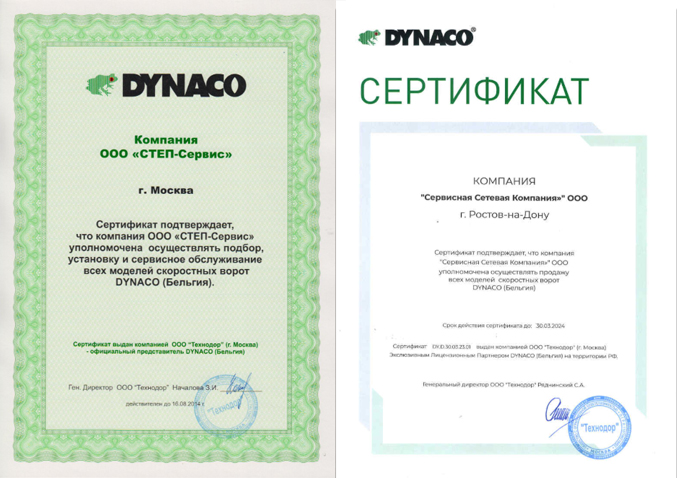 Dynaco компани олон улсын чанарын стандартыг дагаж мөрддөг бөгөөд ISO 9001 (Чанарын удирдлагын тогтолцоо), ISO 14001 (Байгаль орчны менежмент), ISO 45001 (Аюулгүй ажиллагаа ба эрүүл мэнд) зэрэг олон сертификаттай.
