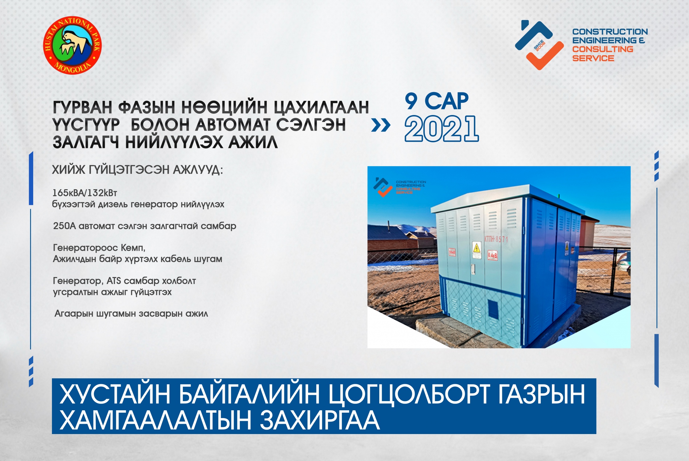 Хустай БЦГ нөөц цахилгаан үүсгүүр, гадна шугам сүлжээ өргөтгөл засварын ажил
