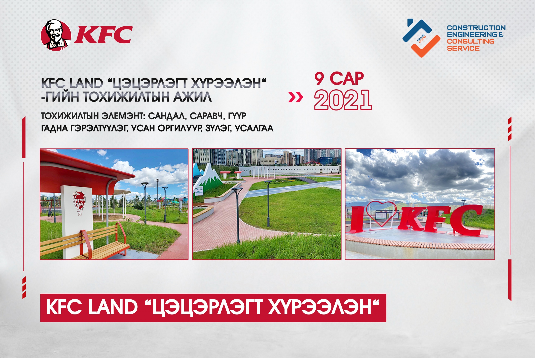KFC Land "Цэцэрлэгт хүрээлэн" гадна гэрэлтүүлгийн ажил хийж гүйцэтгэлээ.
