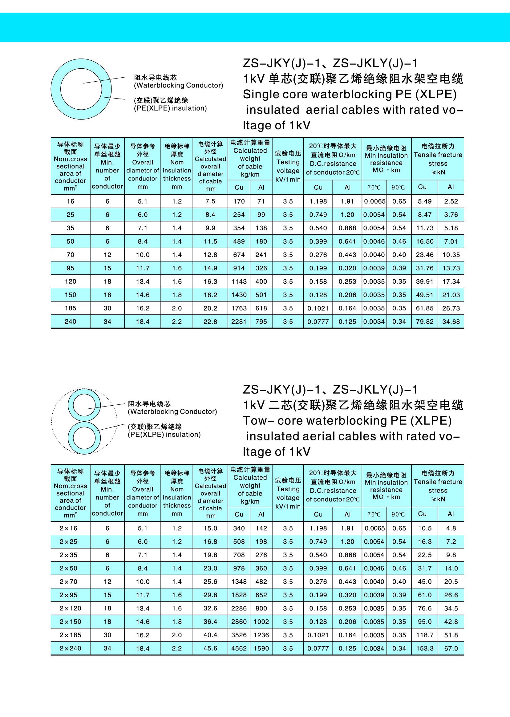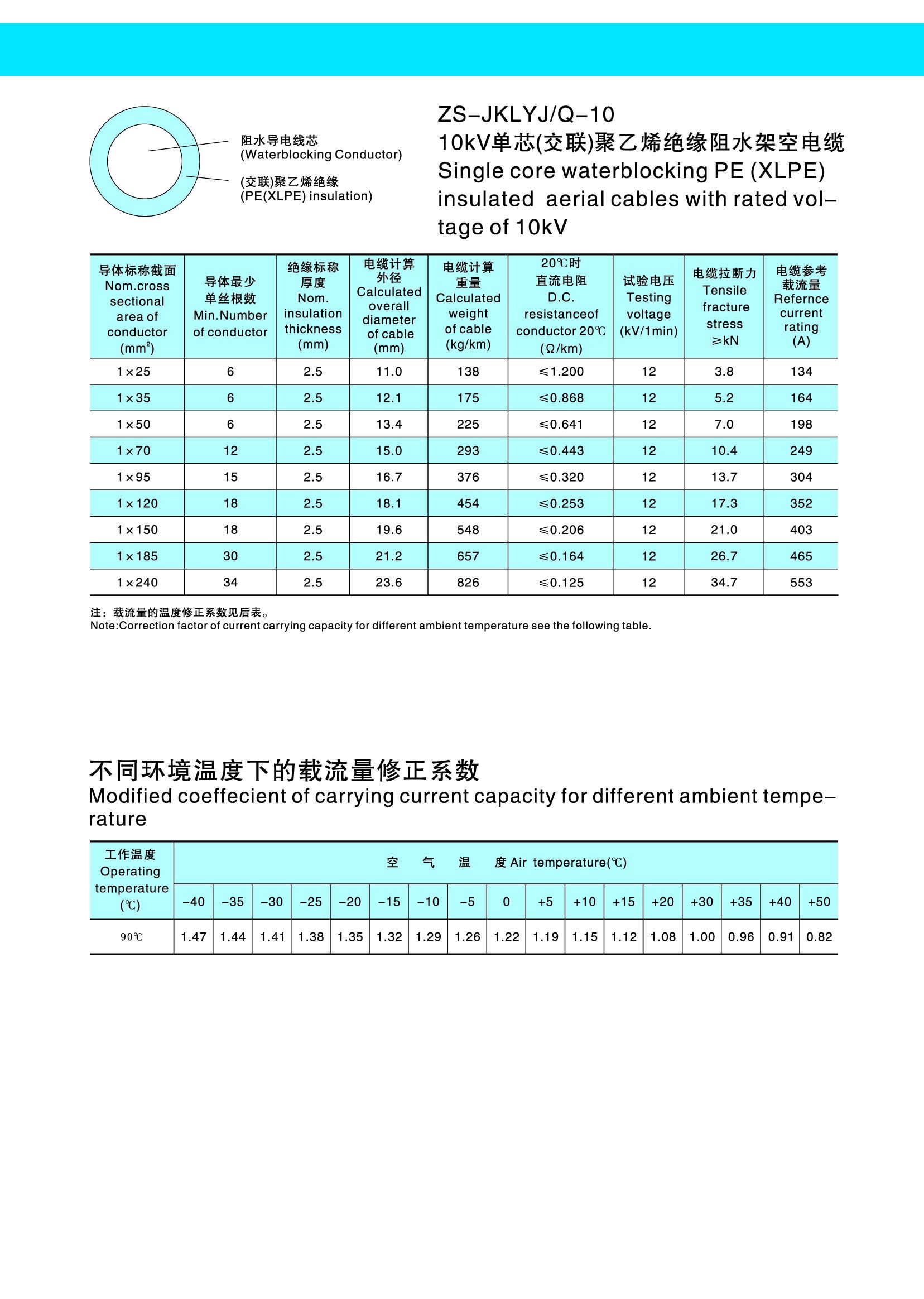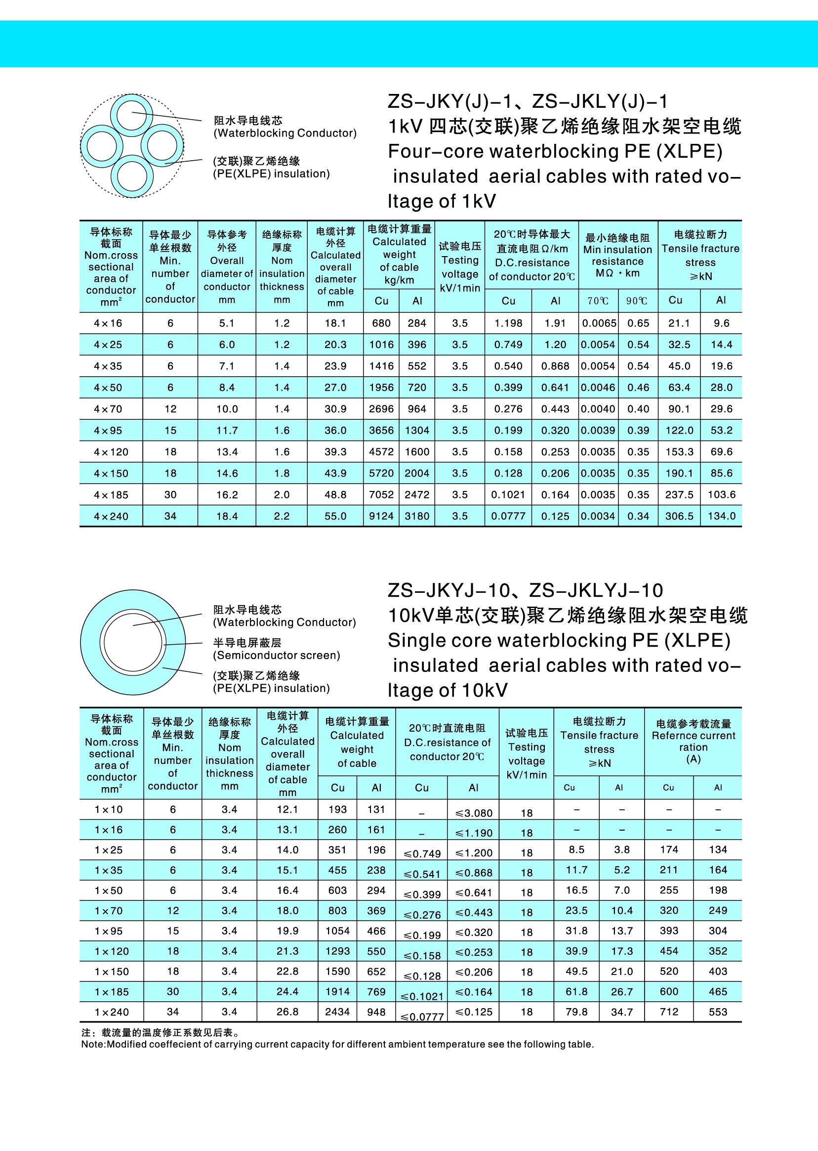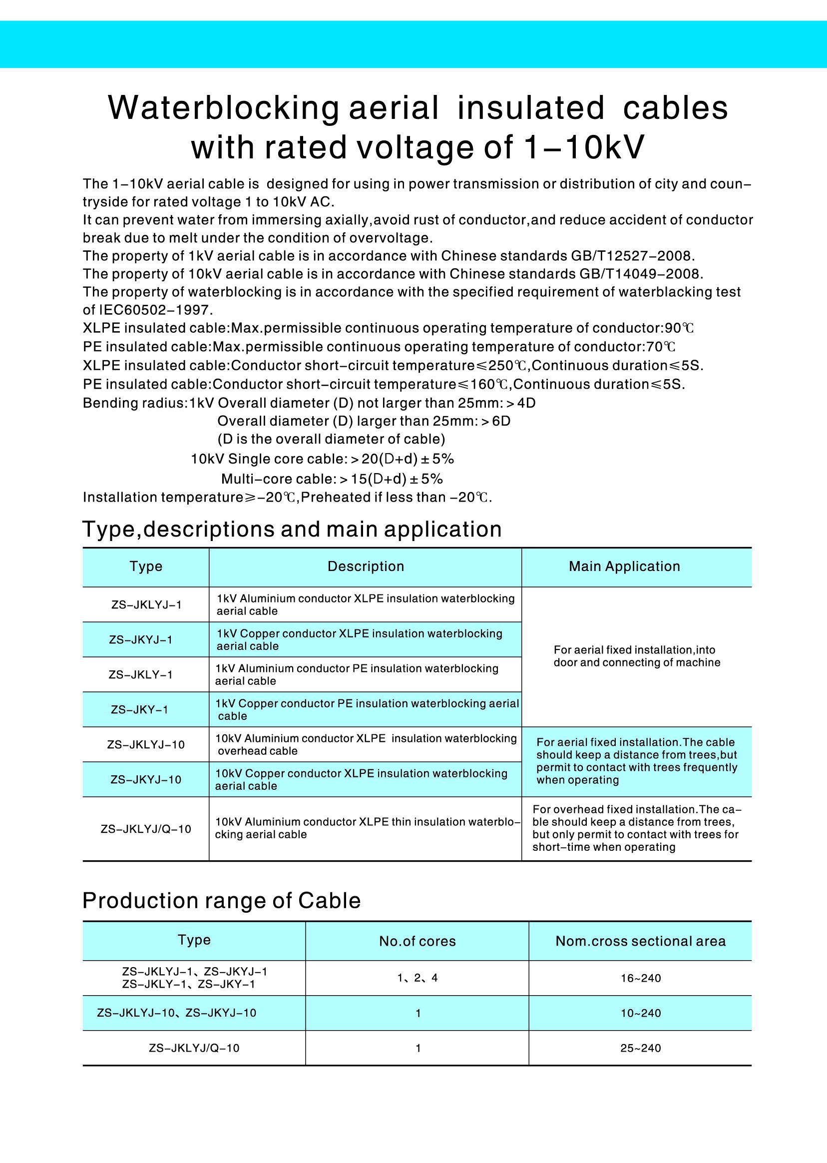 Waterblocking aerial insulated cables with rated voltage 10kB