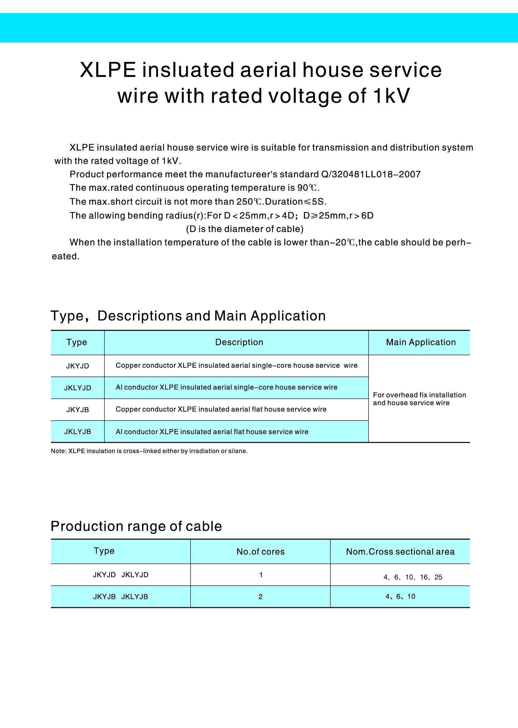 Барилгад зориулагдсан XLPE тусгаарлагдсан агаарын кабель 1кВ