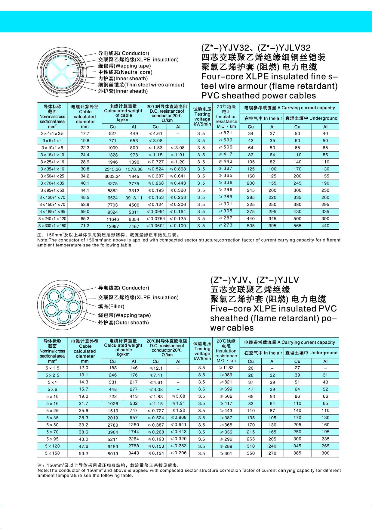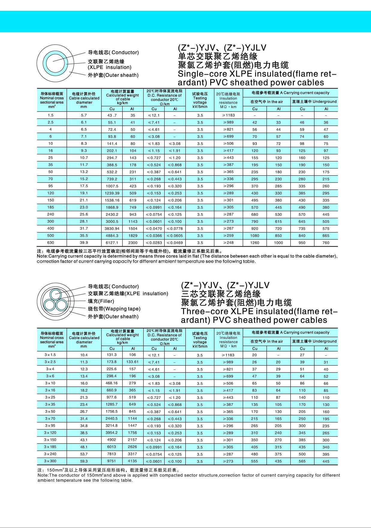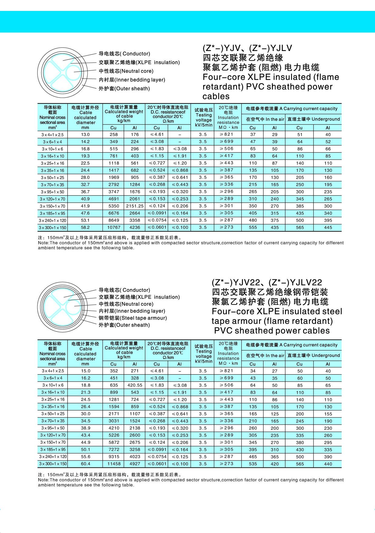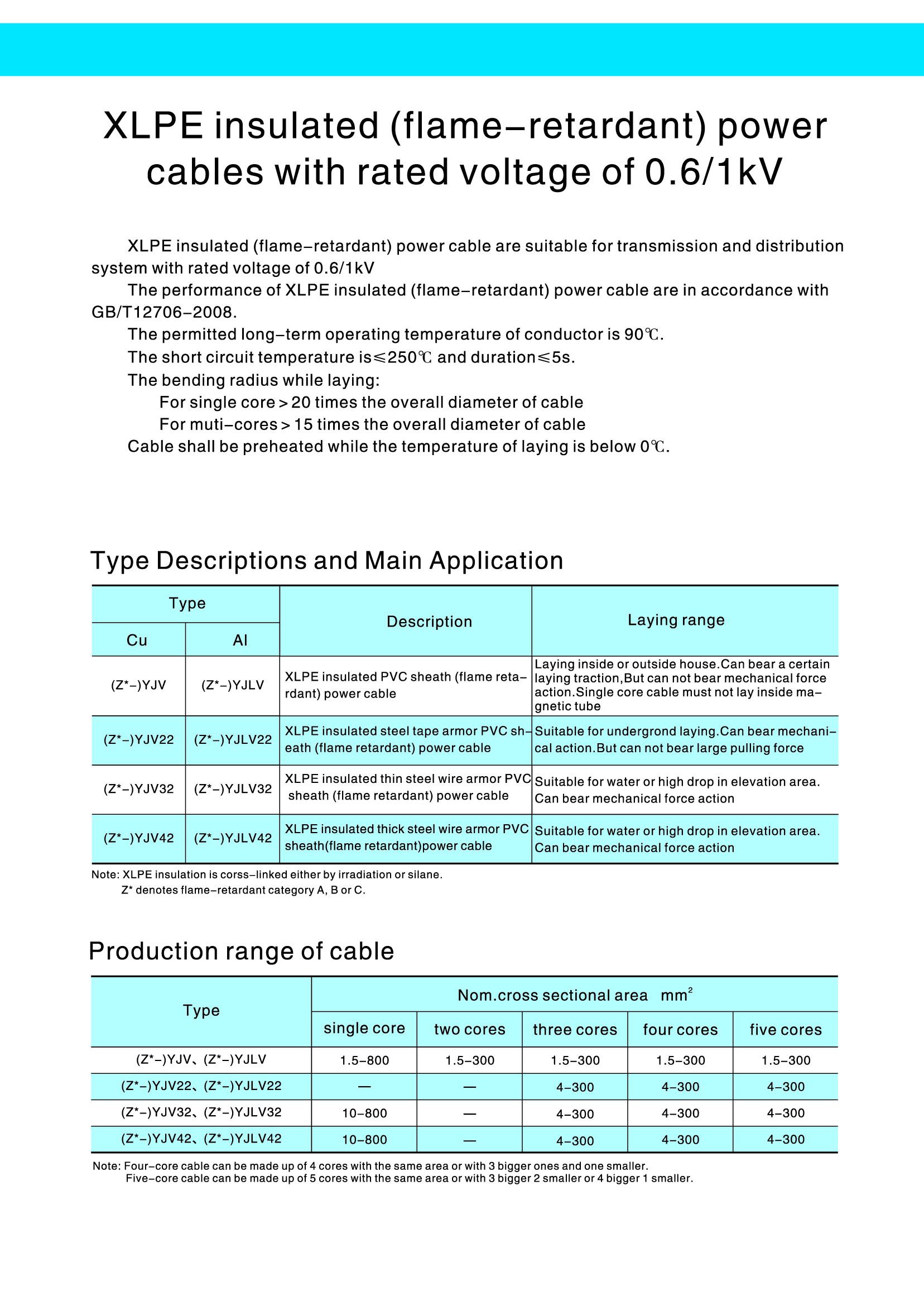 XLPE insulated ( flame-retardant ) power cables with rated voltage of 0.6/1kV