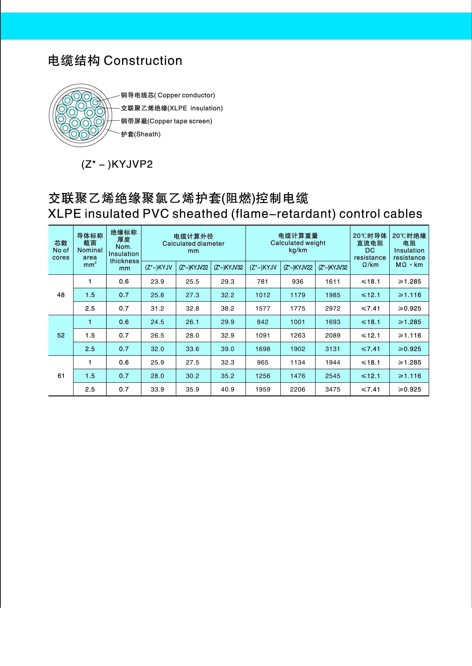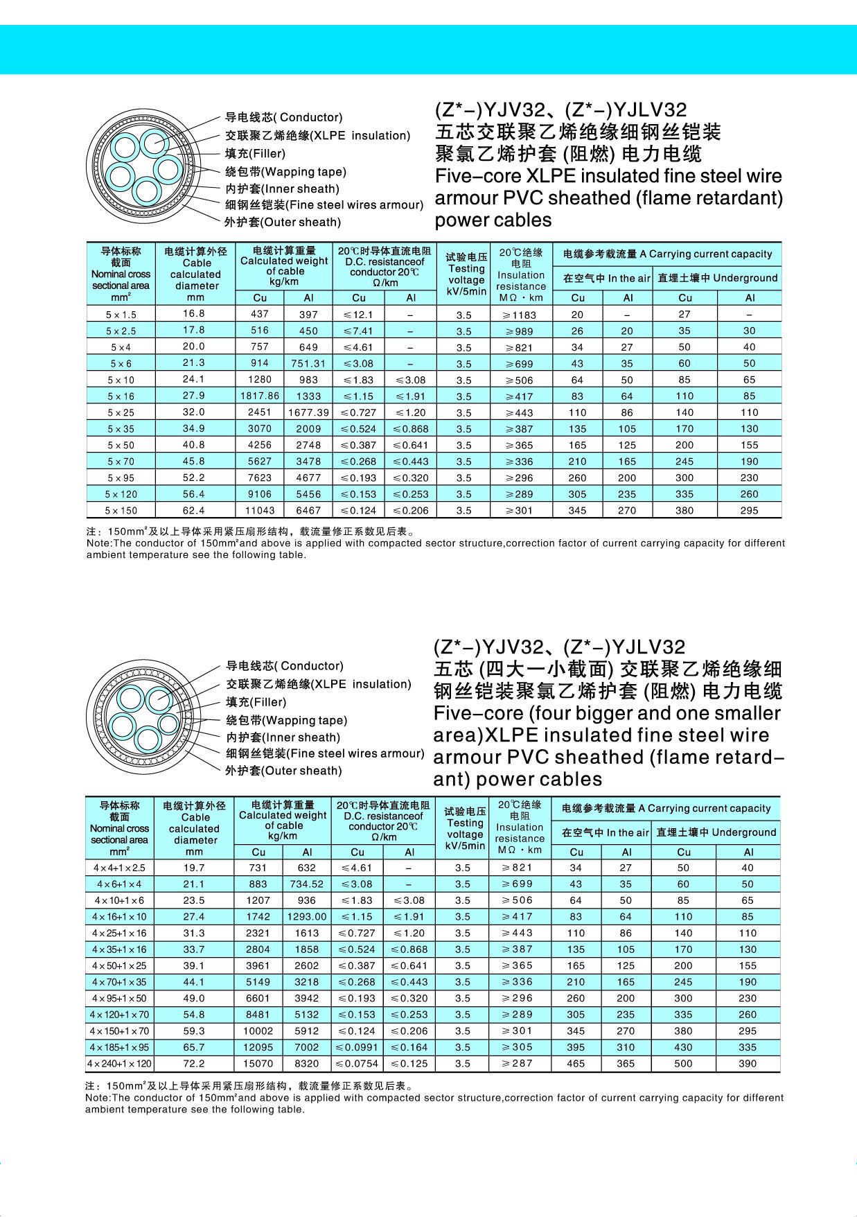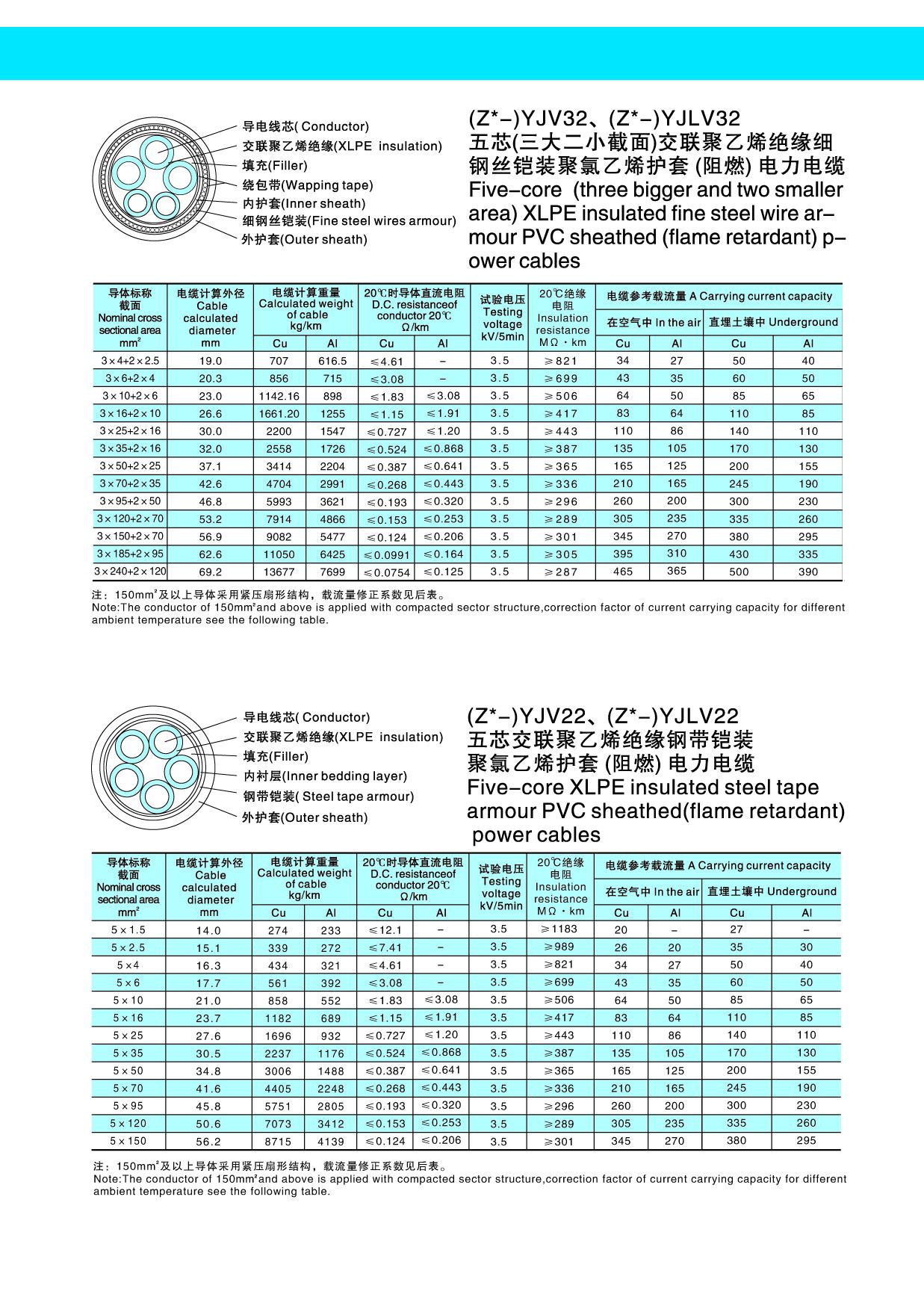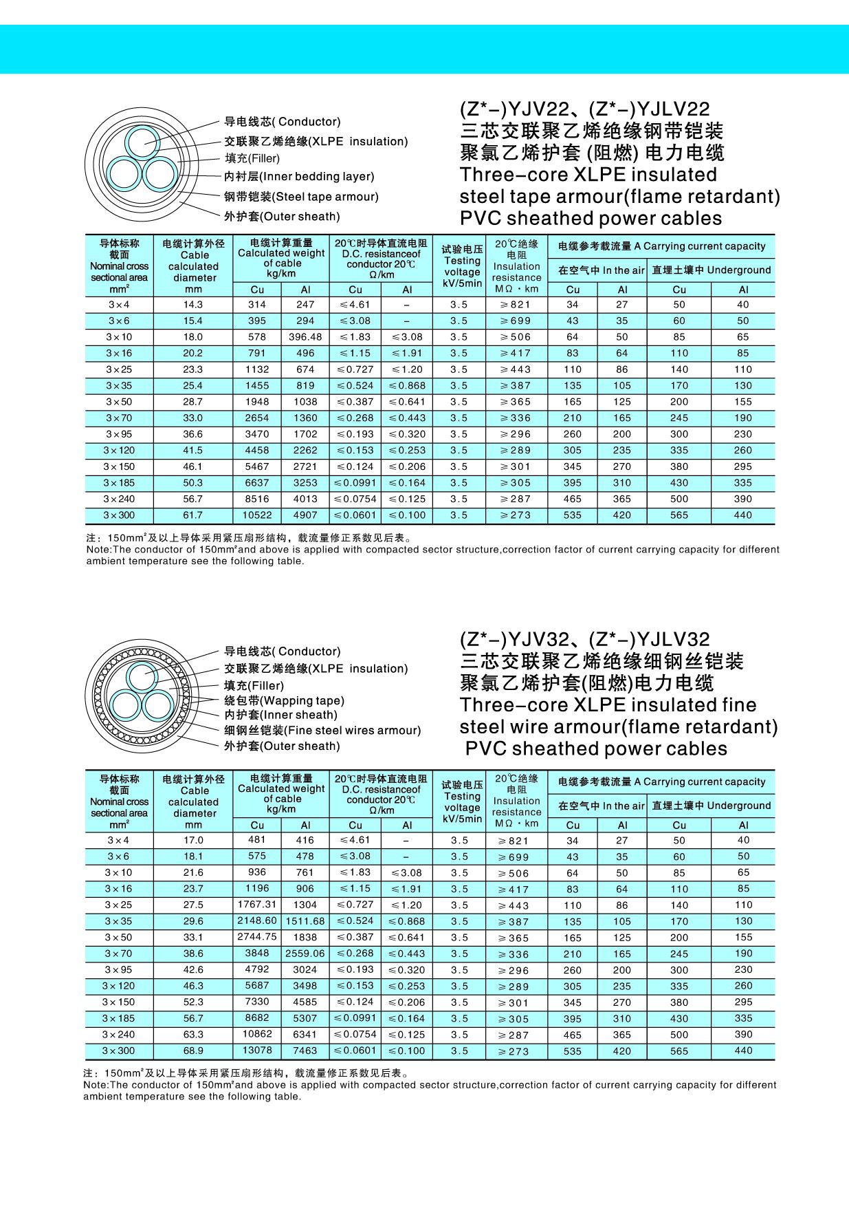 XLPE insulated ( flame-retardant ) power cables with rated voltage of 0.6/1kV