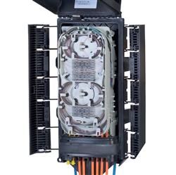 OFDC B8 Fiber Optic Splice Terminal, Gel Cable sealing, two pre-installed 12-fiber splice trays, no splitters.